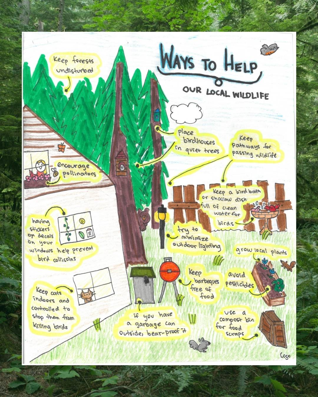 Thank you to all who entered our Wildlife Weeks poster contest over spring break! It was incredibly difficult to choose a winner. All the posters featured beautiful artwork and useful tips to help our local wildlife.